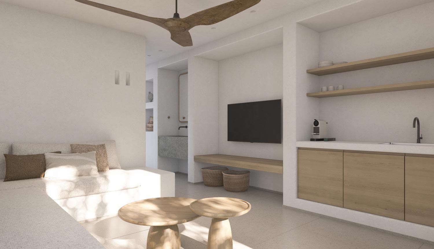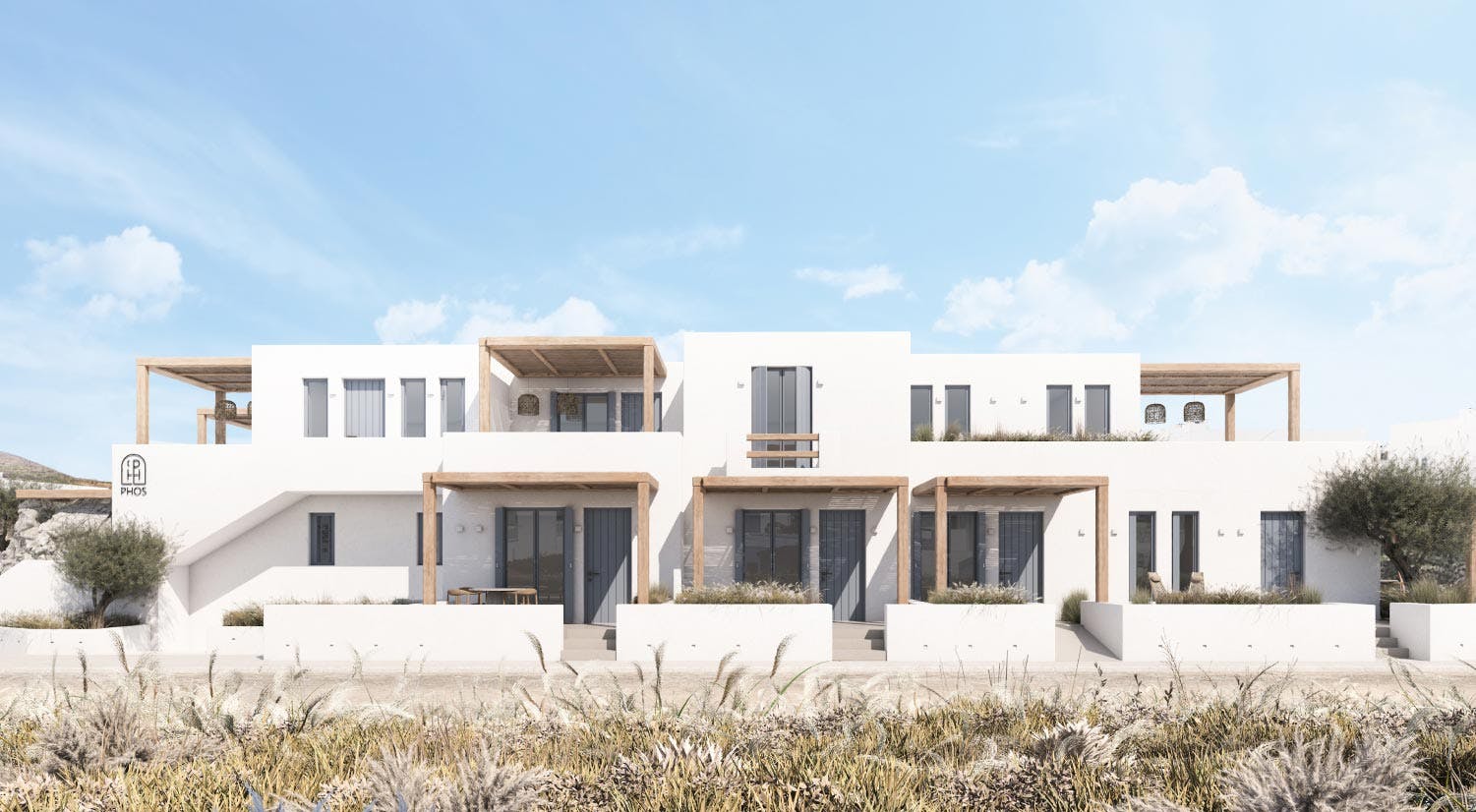 Situated in the scenic village of Pollonia in Milos island, this hotel consists of 10 unique suites of various sizes, a reception-lobby area and an open plan - common use kitchen. Earthy colours, forms and materials was our way to go regarding various decorative elements of the project such as pendant lights, side tables and fabrics in order to stimulate a cosy and calm feeling atmosphere.