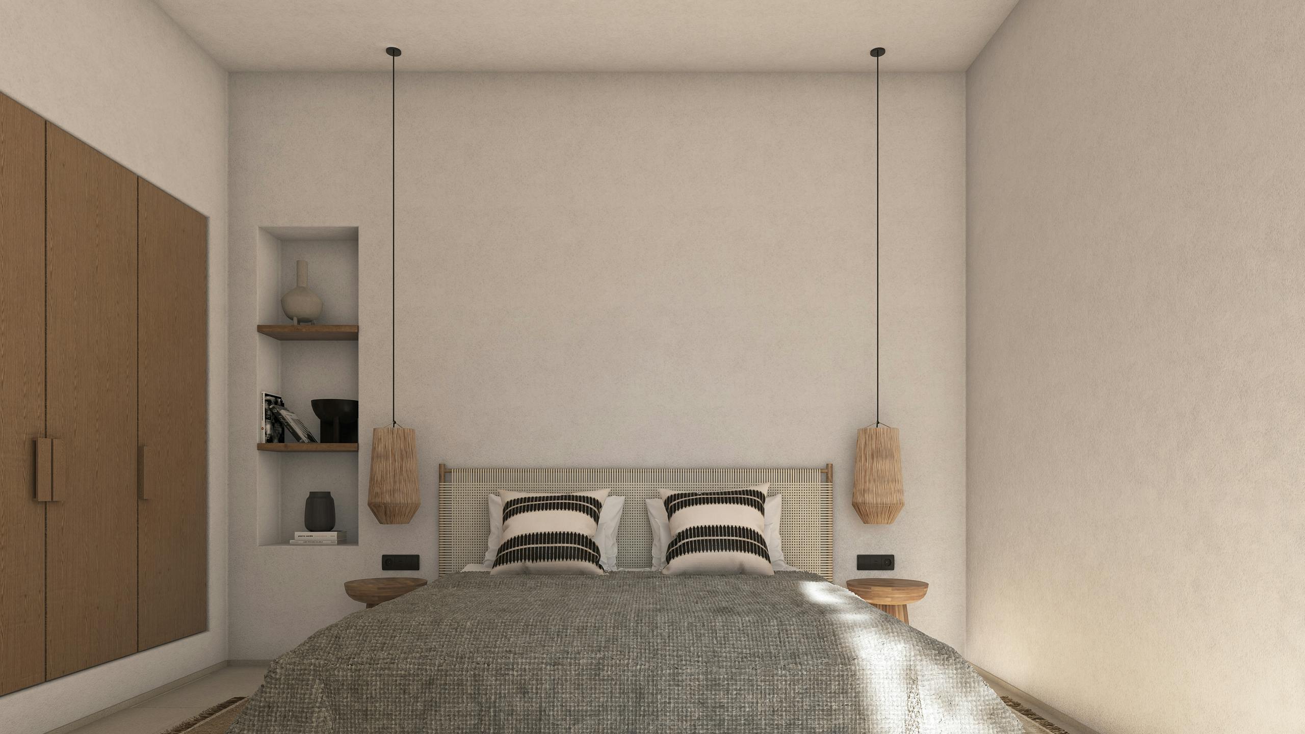 Dressed up with the local brown and grey stones, achieving a traditional countryside Cycladic shelter look, our aim was to create indoor spaces full of light, serenity, and practicality.